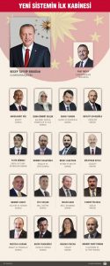 Cumhurbaşkanlığı Hükümet Sistemi’nin ilk Başkanı Recep Tayyip Erdoğan, yeni yönetim sisteminin ilk kabinesini açıkladı.